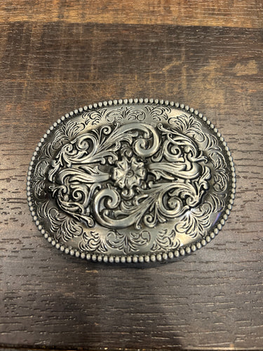 Circular scroll buckle silver