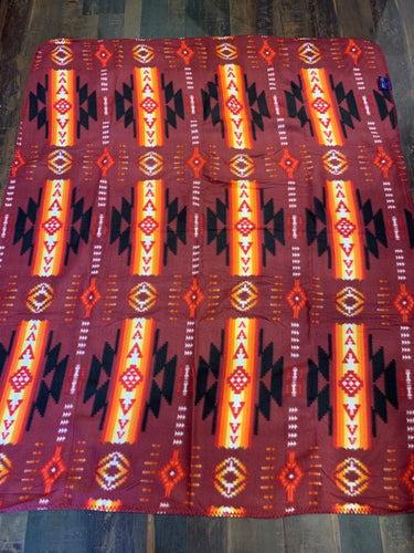 Navajo style lighweight polar fleece lap blanket - Burgundy