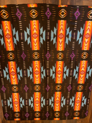 Navajo style lightweight polar fleece blanket - Black & Purple