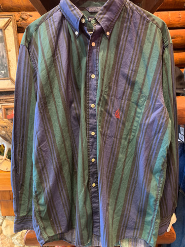 Vintage Nautica Green & Navy Bar Stripe, Large