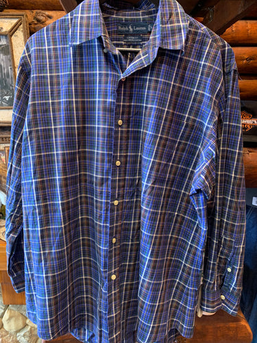 Vintage Ralph Lauren Blue Purple Green Plaid, Large
