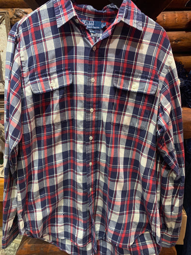 Vintage Ralph Lauren Red W Blue Classic Plaid, Large