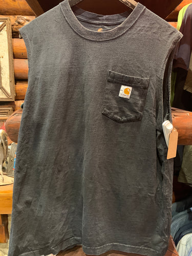Vintage Carhartt Muscle Black Faded Tee, Large